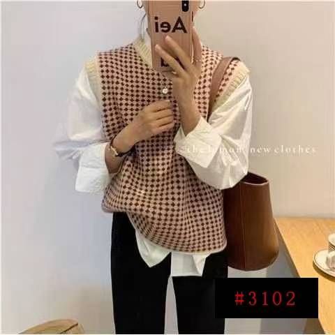 秋季新款韩版复古撞色提花宽松叠穿针织毛衣马甲背心,独立包装,均码宽松版...