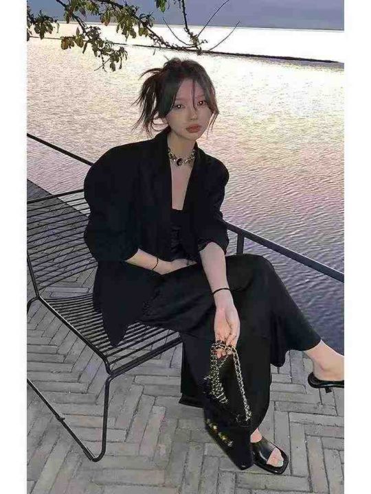 黑色吊带裙子质感高级感气质连衣裙女夏天女神范黑色小...