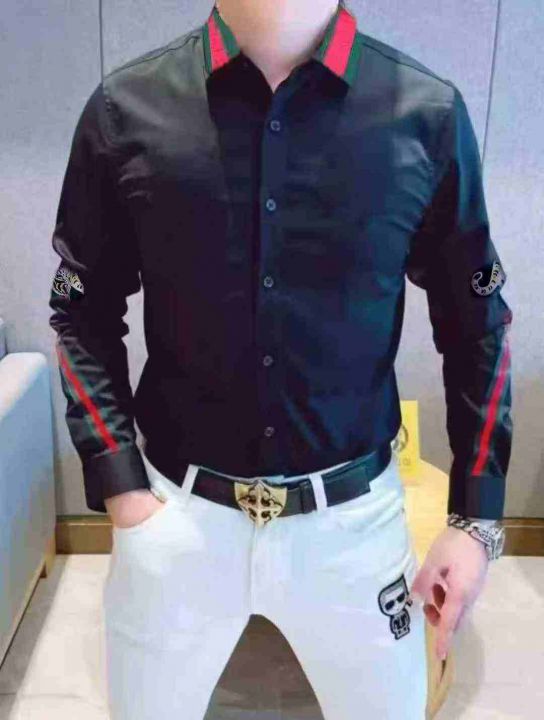 拼色长袖男潮牌撞色印花衬衣精神小伙韩版潮流秋季气质衬衫,独立包装原吊牌,单款两色,码数S-XL,数量869件,分货加1,货号928#95