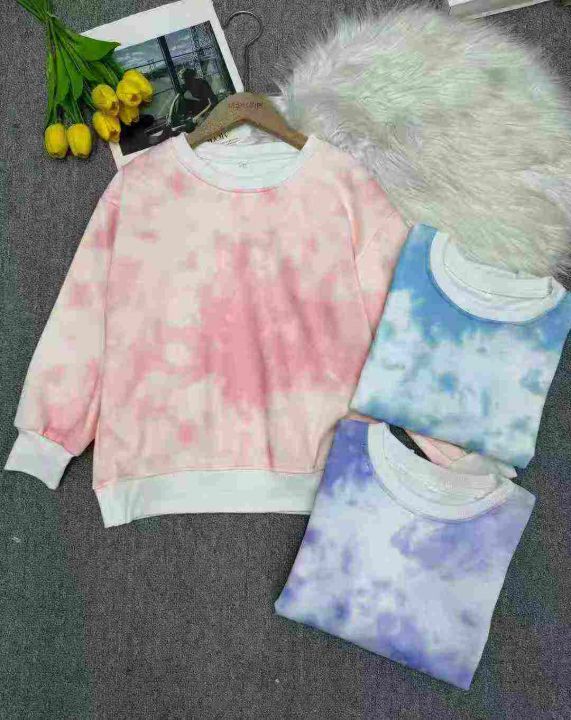 春秋长袖男女童洋气韩版扎染时尚休闲百搭圆领卫衣,独立包装,码数90-140码,数量461件,分货加1,货号1024#52。 货号:24862