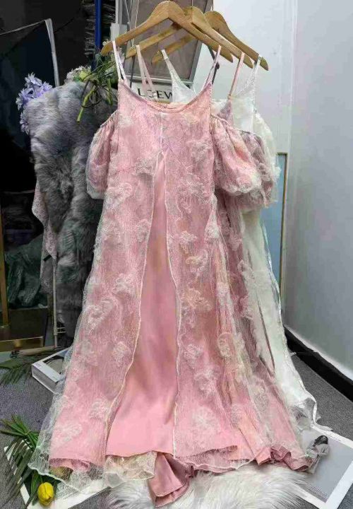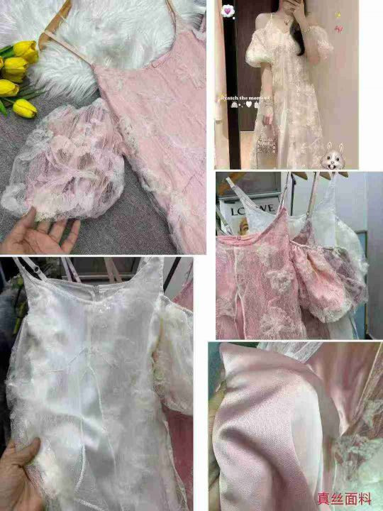 蝴蝶印花吊带连衣裙小仙女露肩宽松显瘦超仙气质长裙,独立包装,码数1-5码,数量140条,2码120厘米,大货粉色为主,货号1114#23。 货号:24862
