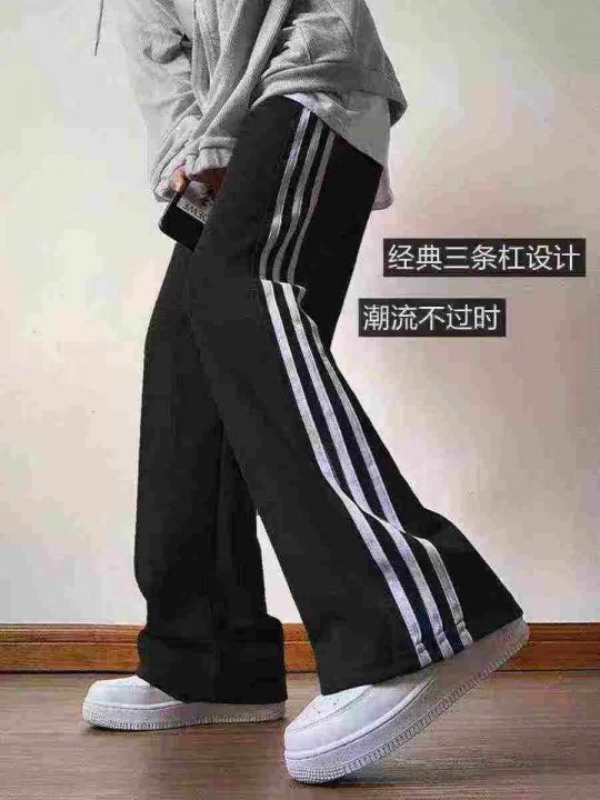 ☕️华夫格卫裤运动裤男女新款ins宽松直筒休闲显瘦三条杠高腰垂感阔腿裤256...