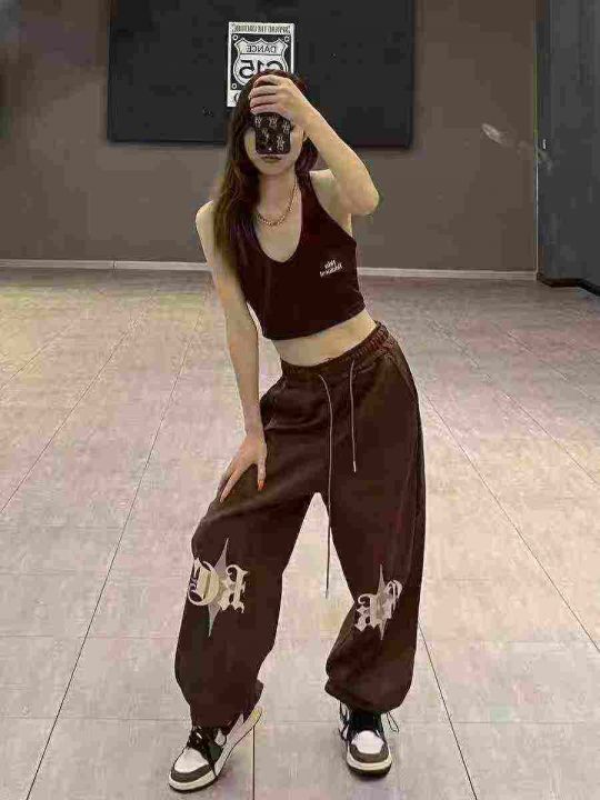 ☕️欧美hiphop街舞裤子咖色美式复古运动卫裤爵士舞vi...