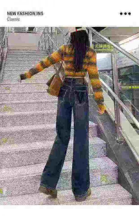 ☕️加绒加厚深色阔腿牛仔裤女高腰显瘦百搭设计感直筒长裤潮150条全清25元...
