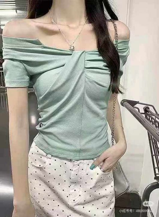 法式甜辣一字肩短袖125件,全清4.8,分货5.8,面料舒...
