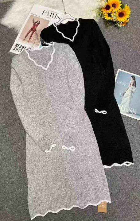 秋冬新款法式复古拼色时尚针织毛衣连衣裙,独立包装,...