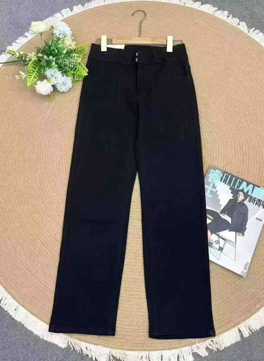 亏本清仓处理194件高品质水洗高腰修身黑色直筒牛仔裤...