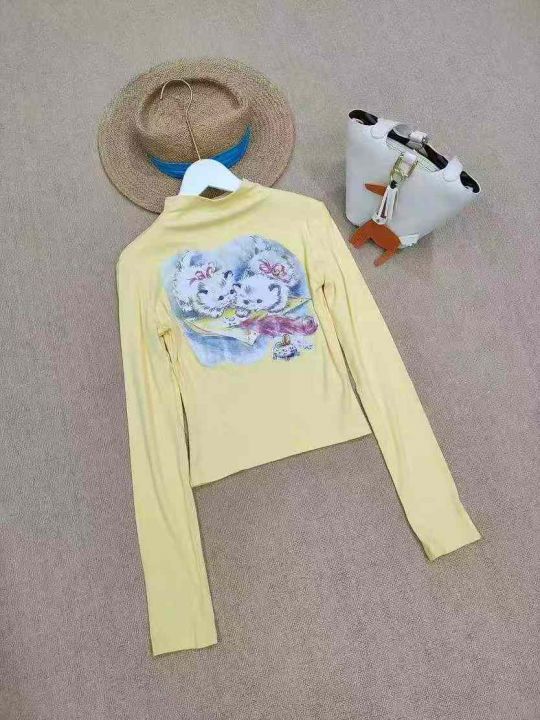 [月亮]:美式复古猫咪印花辣妹长袖上衣