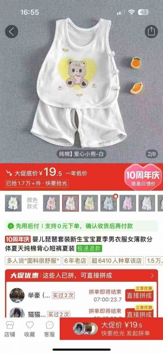 185套婴童琵琶套装纯棉背心短裤夏装,纯棉!商超品质!尺码55-60-65,独立包装!超低秒杀价3.8 不分货