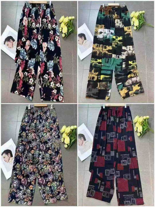 下身长裤[太阳]全清5.8,10000件。 中老年妈妈花裤系列,夏季中老年宽松阔腿垂感冰丝速干凉凉裤,垂感好,有弹力,腰部有弹力松紧,不挑人,面料柔软,花色多,非常适合摆地摊,赶集,做早市/夜市首选产品、这个性价比太给力啦[666],均码、可以穿到135斤左右,具体以实际身材比例为准、配小份100/200件起6.3