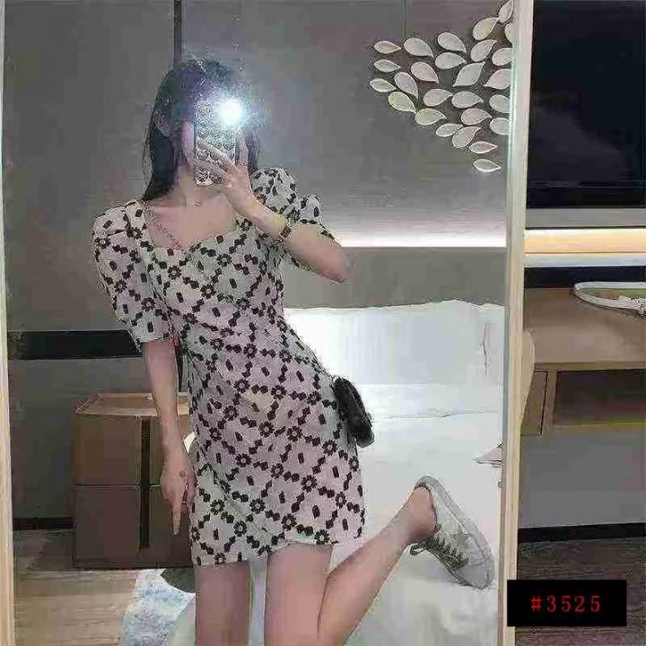 全清价8.5元夏季热卖雏菊泡泡袖名媛气质显瘦短袖裙方领设计感连衣裙,独立...