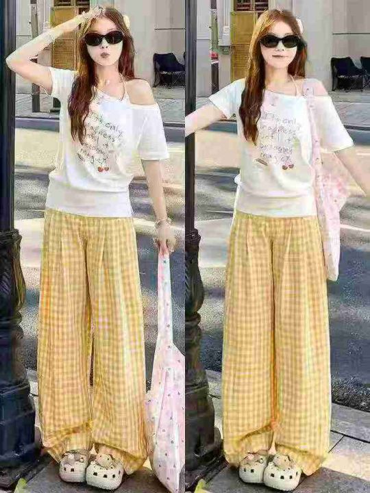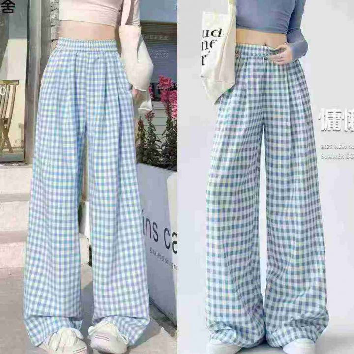 下身阔腿长裤[太阳]全清8.5,3200件,均码,整款,理想格子阔腿裤女夏薄款慵懒松弛感宽松直筒休闲阔腿裤,慵懒感十足,面料舒适,夏季首选款,又漂亮又舒适[色],200件起分货9.5