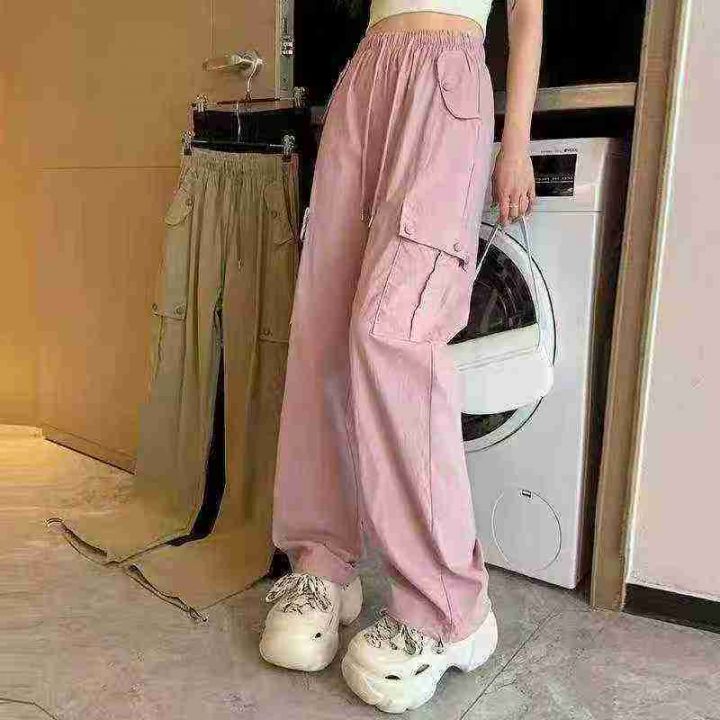 下身工装长裤[太阳]全清22.1,800件、均码春夏季抽绳松紧腰工装装高腰直筒多口袋宽松运动速干休闲工装裤,糖果色[哇],裤脚抽绳束口设计,一裤多穿️阔腿️束脚[色],品质,独立包装,带吊牌,100件起多色混配23.1