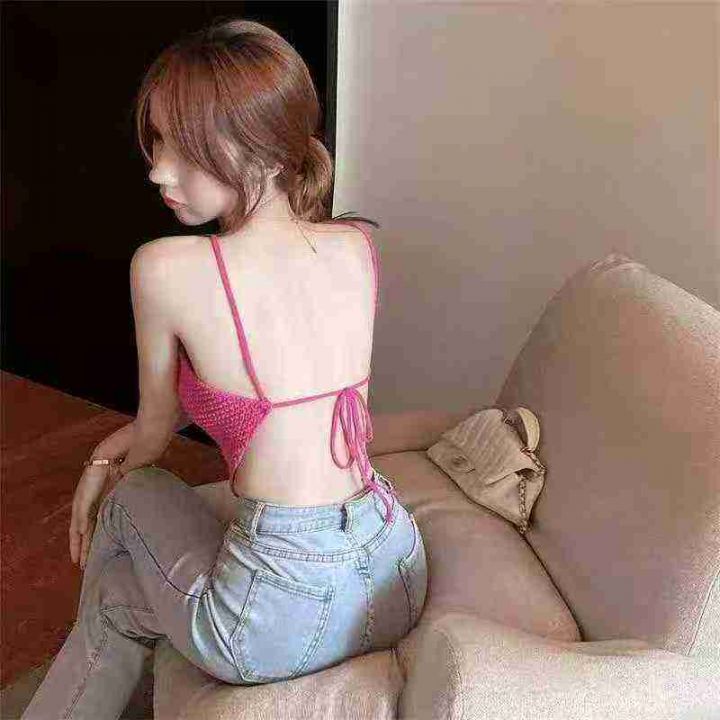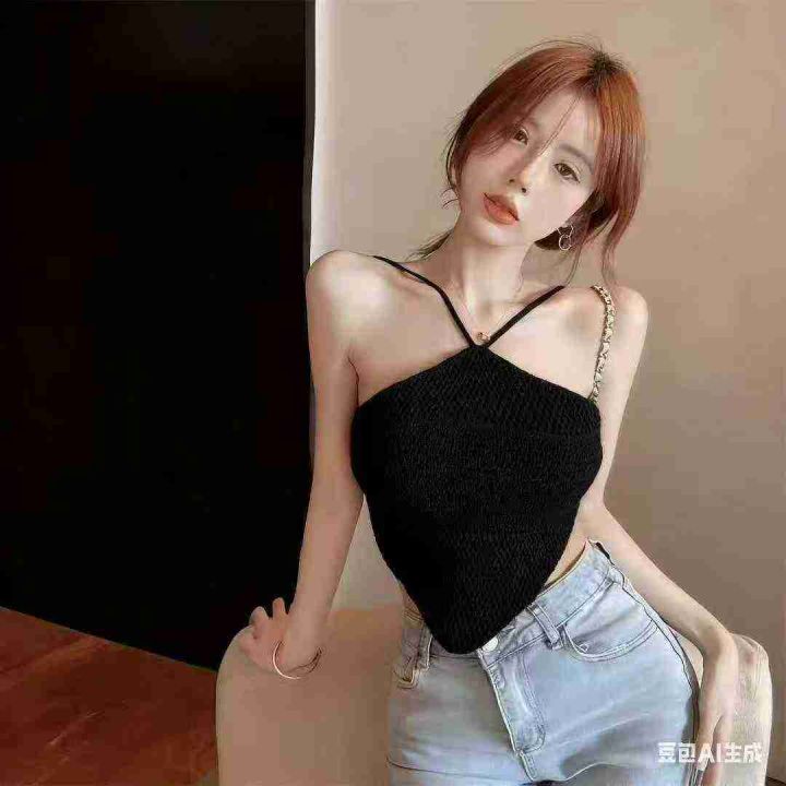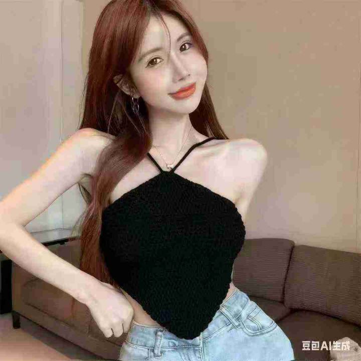 夏季新款泰兰德穿搭甜辣妹露背挂脖针织吊带背心,独立...