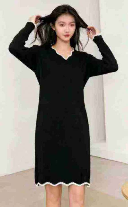 秋冬新款法式复古拼色时尚针织毛衣连衣裙,独立包装,均码面料软糯厚实,12...