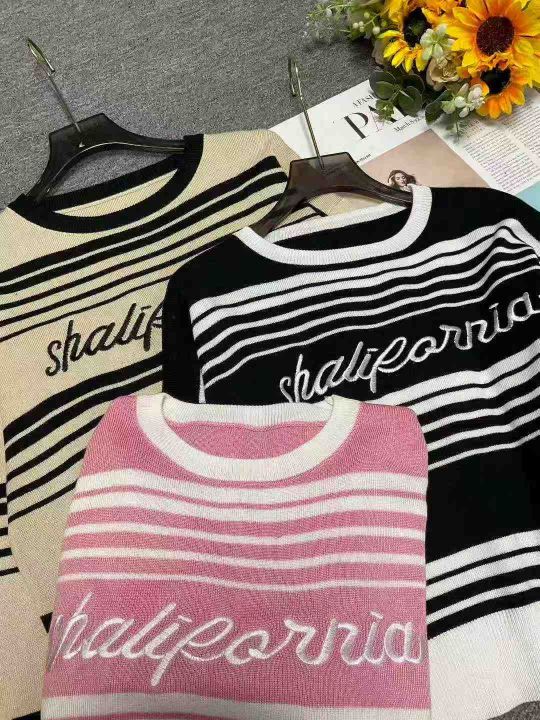 秋季新品撞色条纹刺绣宽松百搭针织套头毛衣,独立包装,均码面料软糯舒适弹力大,350件,全清7.9元超低价秒杀!分货加一!
