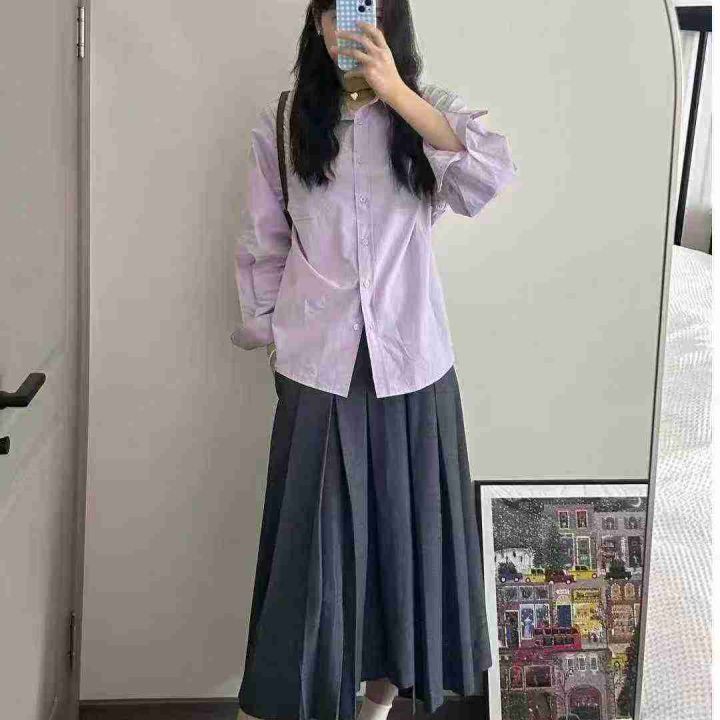高级感紫色醋酸缎面通勤宽松长袖上衣,[爱心]70件左右,款号#7173,码数S-2XL,穿80-140斤,万佳档口货,原包装️无瑕疵,[666]实体店品质,(模特图仅供参考),分货加一
