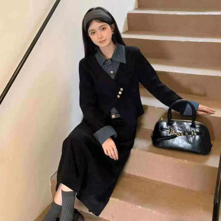 9.9清电商仓回收102件少女风拼接假两件收腰显瘦韩版连衣裙,码数S-2XL。面...