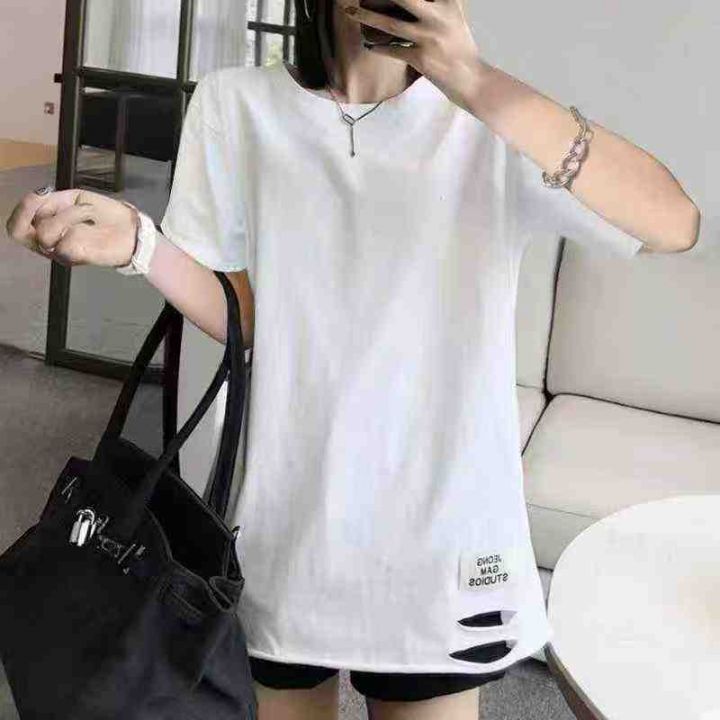 电商仓回收720件韩系纯棉破洞叠穿打底衫宽松中长款短袖t恤女,码数S-2XL。纯棉面料柔软舒适。有独立包装。分货➕0.5。。 货号:1303