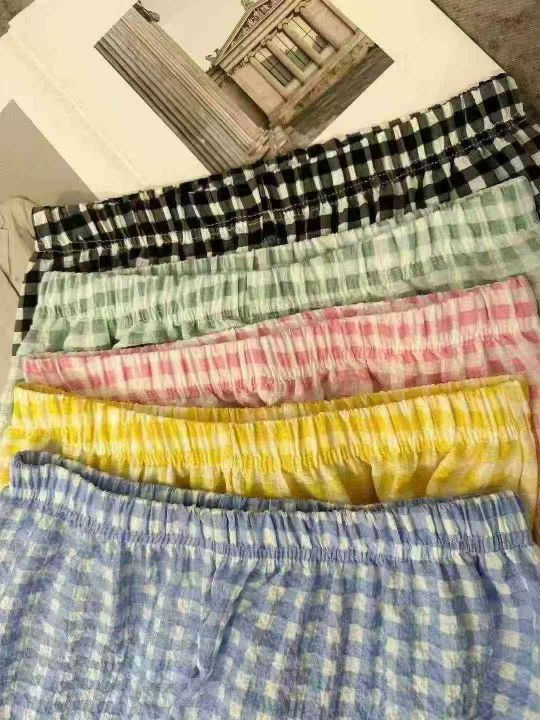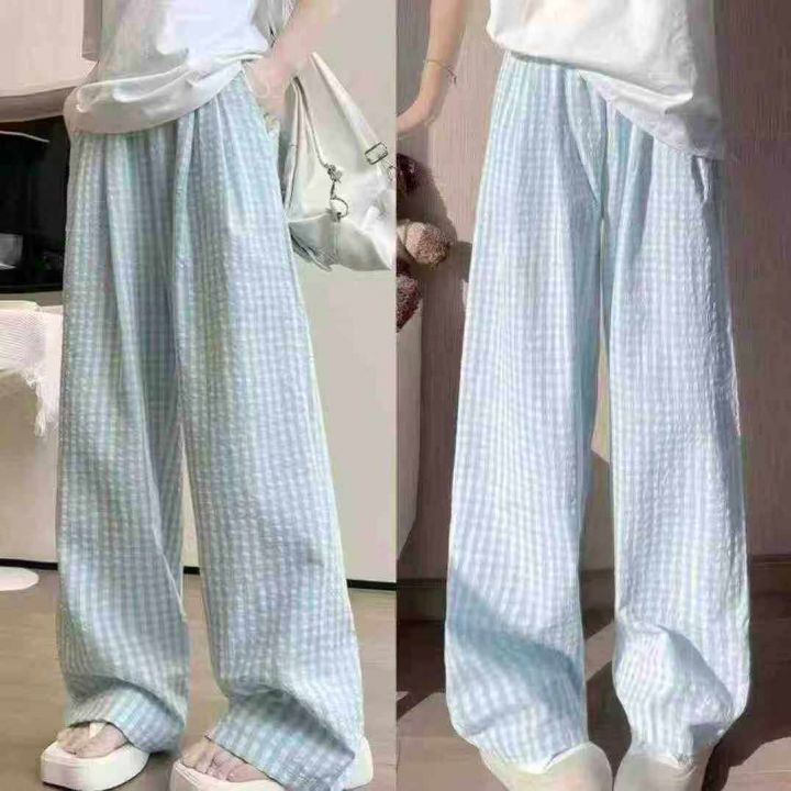 下身阔腿长裤[太阳]全清8.5,3200件,均码,整款,理想格子阔腿裤女夏薄款慵懒松弛感宽松直筒休闲阔腿裤,慵懒感十足,面料舒适,夏季首选款,又漂亮又舒适[色],200件起分货9.5