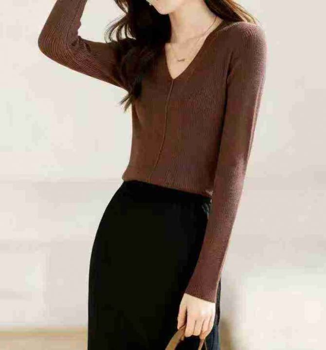 秋冬新款法式V领弹力修身高级显瘦气质打底通勤包芯纱长袖毛衣,独立包装,均码面料软糯舒适弹力大,220件,全清6.9元超低价秒杀!