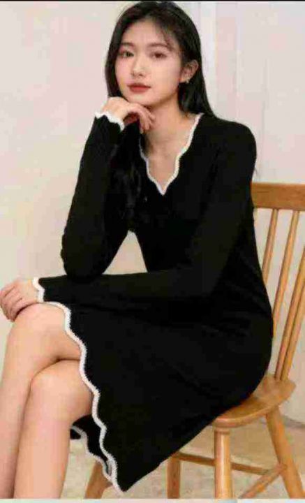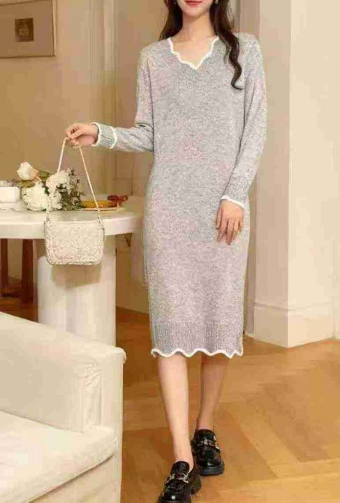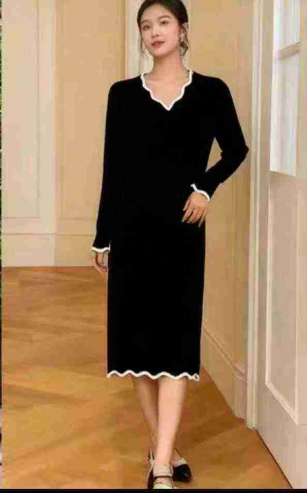 秋冬新款法式复古拼色时尚针织毛衣连衣裙,独立包装,...