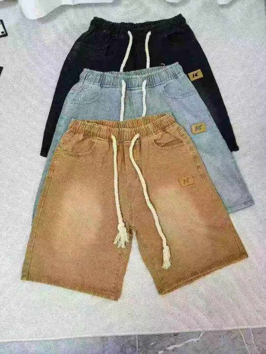 男士复古抽绳牛仔短裤,夏季美式高街设计感小众潮牌五分裤子,码数M,L,XL,500条