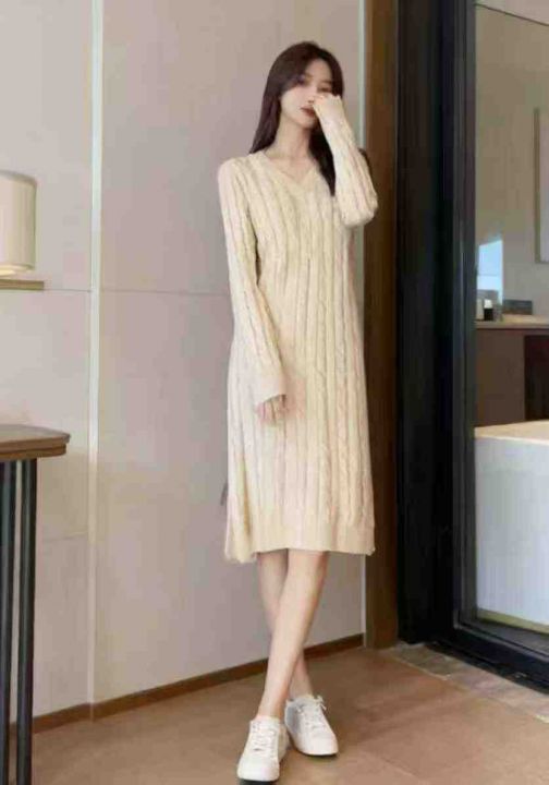秋冬新款麻花中长款时尚针织毛衣连衣裙,独立包装,均码面料软糯厚实,242件,全清7.9元超低价秒杀!