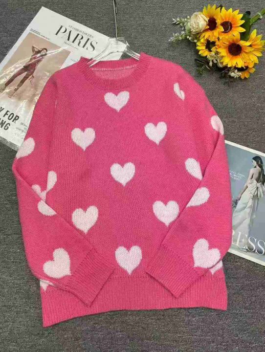 秋冬新款宽松爱心提花中长款遮屁慵懒风北极绒套头毛衣...