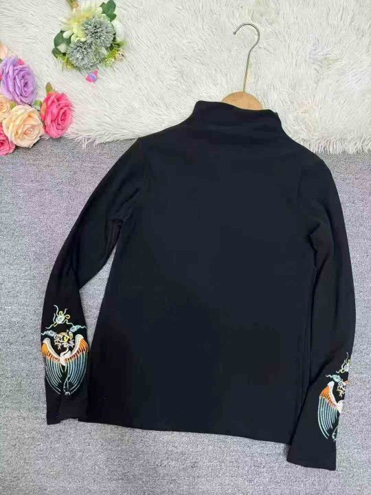 ️446件,秋冬新款德绒打底文艺复古刺绣百搭上衣民族中式高领保暖德绒长袖T恤,独立包装,码数M-3XL,全清5.8元,分货➕0.5