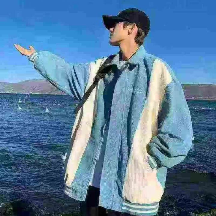 灯芯绒外套男春秋季美式vintage潮牌复古宽松拼接撞色...