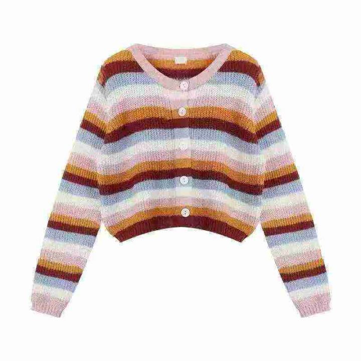 2025秋冬新款潮毛衣女显瘦休闲彩条针织外套开衫,独立...