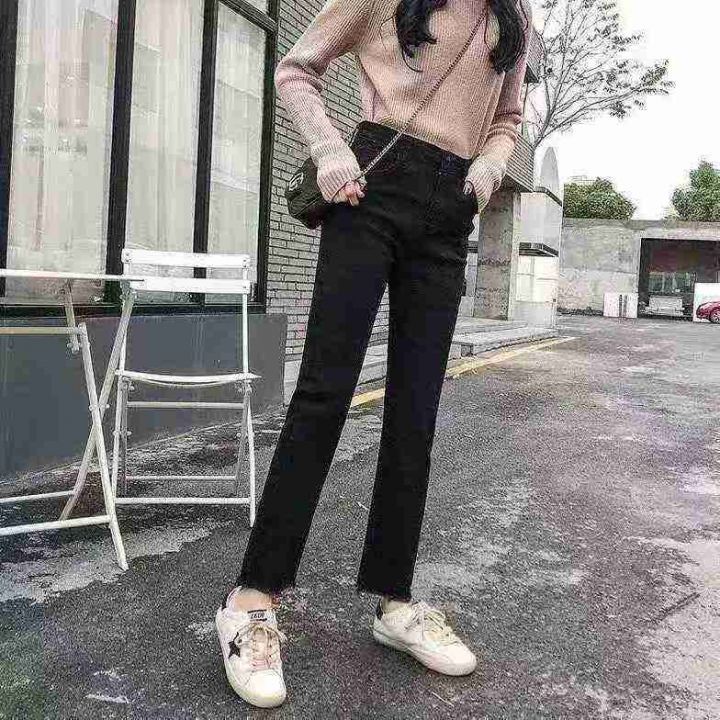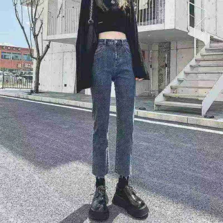 ☕️高弹力破洞韩版高腰牛仔裤女显瘦显高百搭直筒裤九...