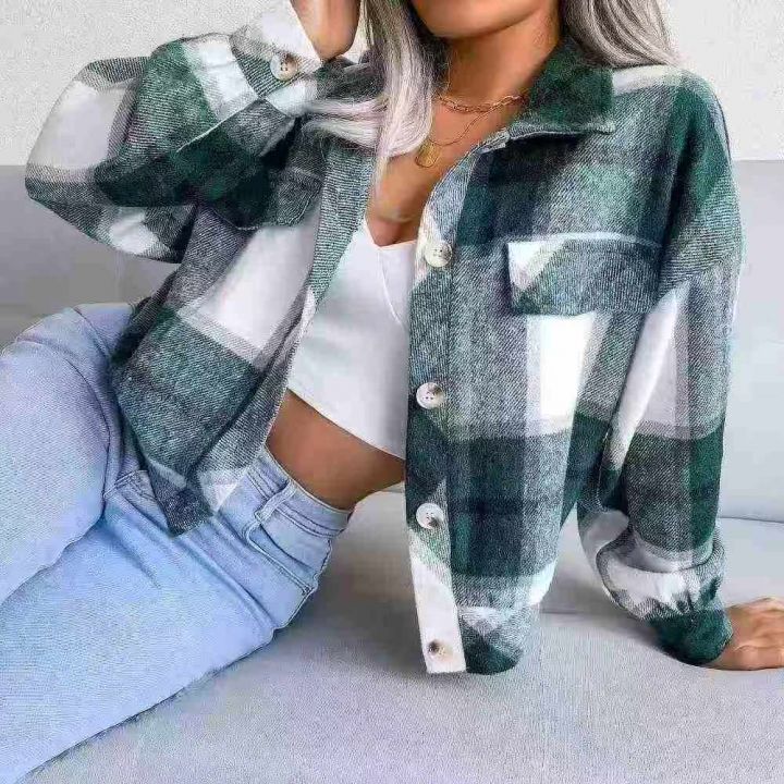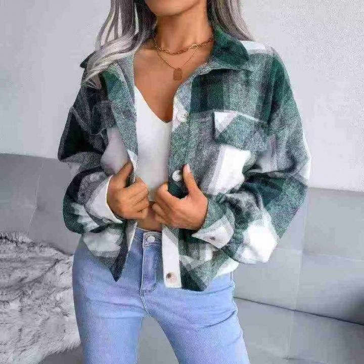 201件,欧美秋冬格子灯笼长袖毛呢外套夹克亚马逊时尚...