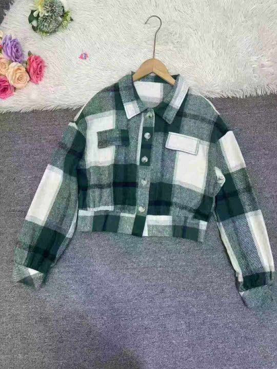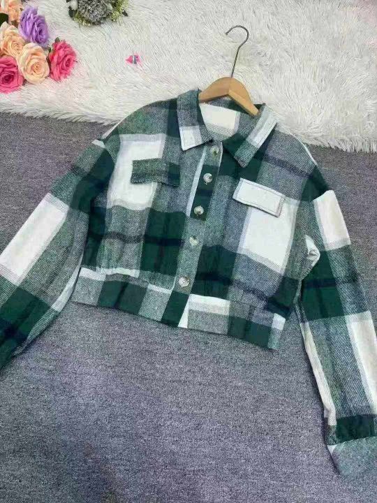 201件,欧美秋冬格子灯笼长袖毛呢外套夹克亚马逊时尚女装,独立包装,码数S-2XL,全清8.8元,分货➕1