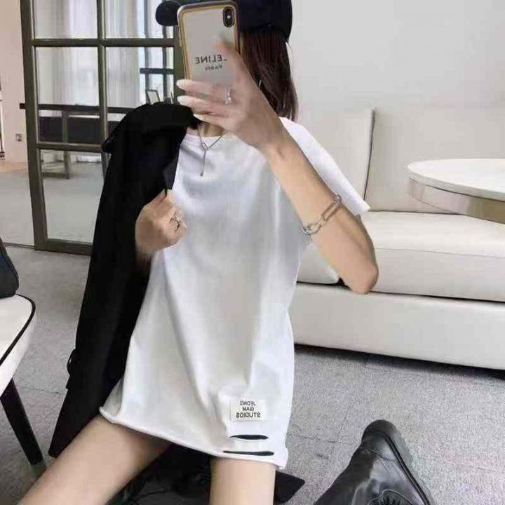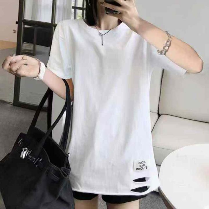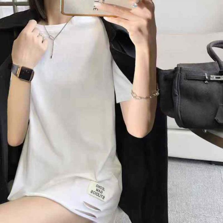 电商仓回收720件韩系纯棉破洞叠穿打底衫宽松中长款短袖t恤女,码数S-2XL。纯棉面料柔软舒适。有独立包装。分货➕0.5。。 货号:1323