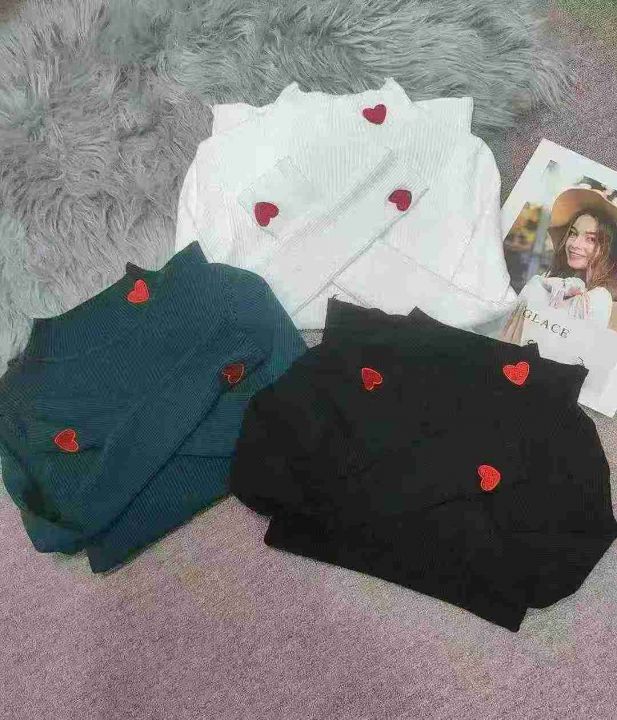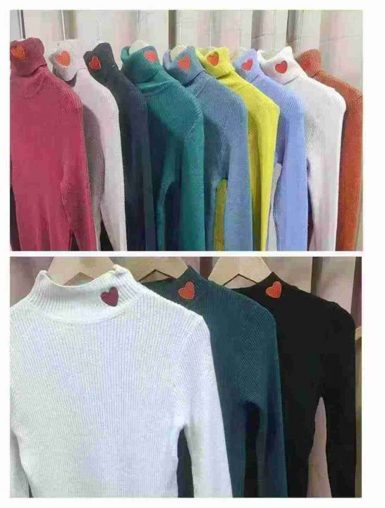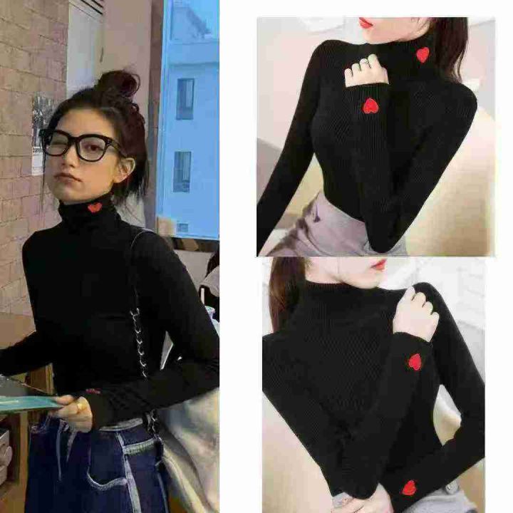 包芯纱气质洋气修身内搭高领半高领毛衣潮爱心刺绣针织打底衫,独立包装,高领420件,半高领170件,清6.99元,分货加5毛