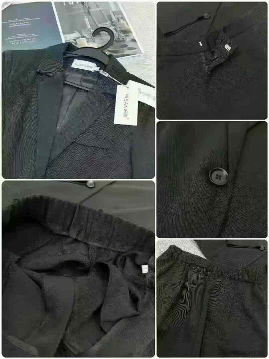 杭州工厂回收939套品牌女士西服套装,码数xs-l,宽松版型,单款单色,质量款式超级好,大货防尘袋带衣架。。 货号:1323