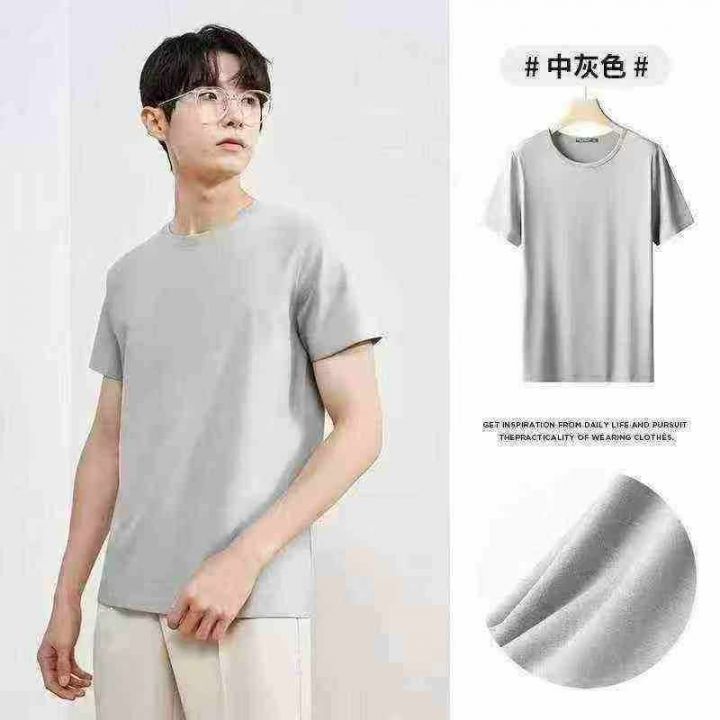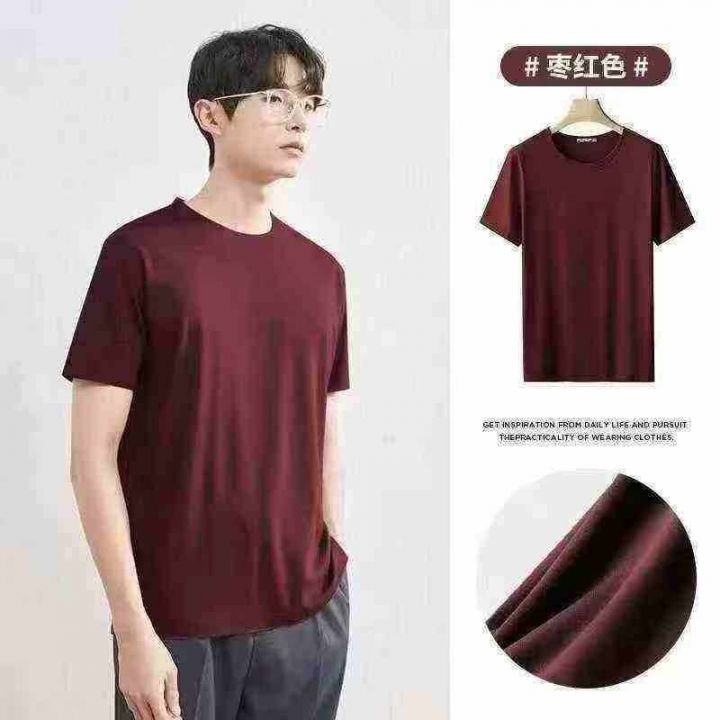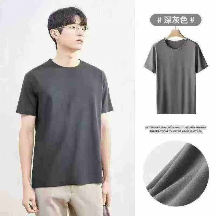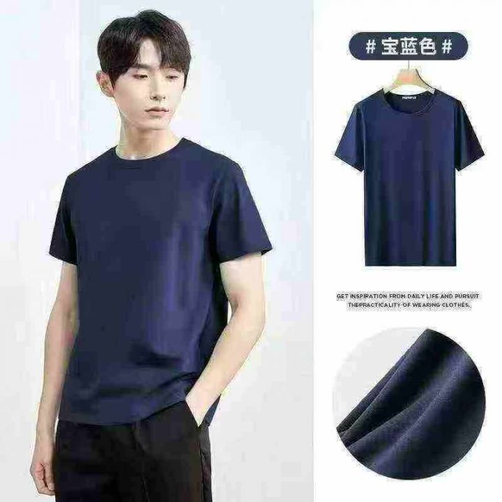 男士冰丝短袖T恤速干半袖新款夏季圆领上衣纯色体恤(后领包边)