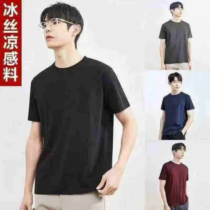 男士冰丝短袖T恤速干半袖新款夏季圆领上衣纯色体恤(...