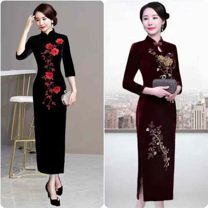 天猫仓回收232件改良金丝绒长款高端礼服复古气质优雅开叉旗袍连衣裙,码数S-3XL。版型质量好,面料柔软有弹性,满满高级感。有独立包装。分货➕1。 货号:1323
