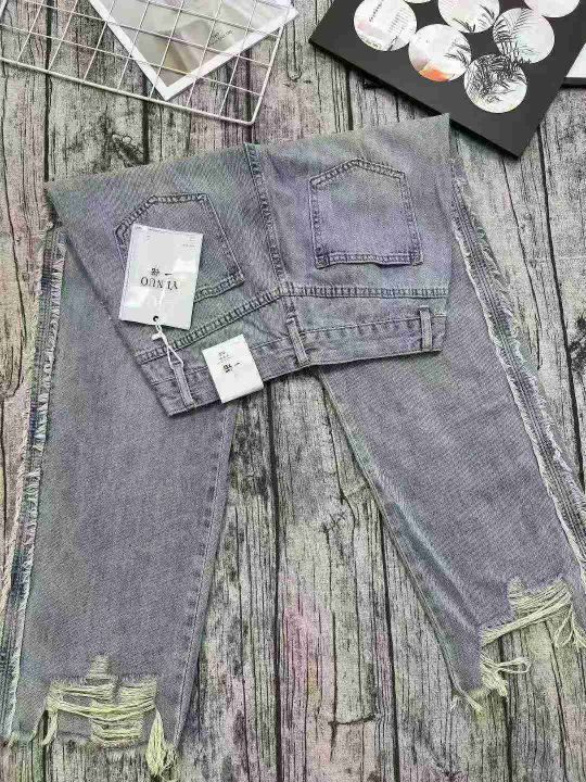 ☕️乞丐阔腿牛仔裤女秋季新款高腰宽松毛边直筒裤九分裤 270条全清9.9元,码数S到XL,独立包装[庆祝][庆祝][庆祝]高品质带防盗扣[勾引][勾引][勾引]。 货号:24862