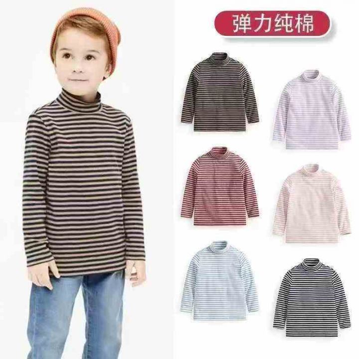 500件左右男女童半高领打底衫条纹长袖T恤秋冬款儿童装宝宝秋衣上衣冬季,半个高领居多!尺码80-150,独立包装!纯棉!高弹力!。 货号:1323