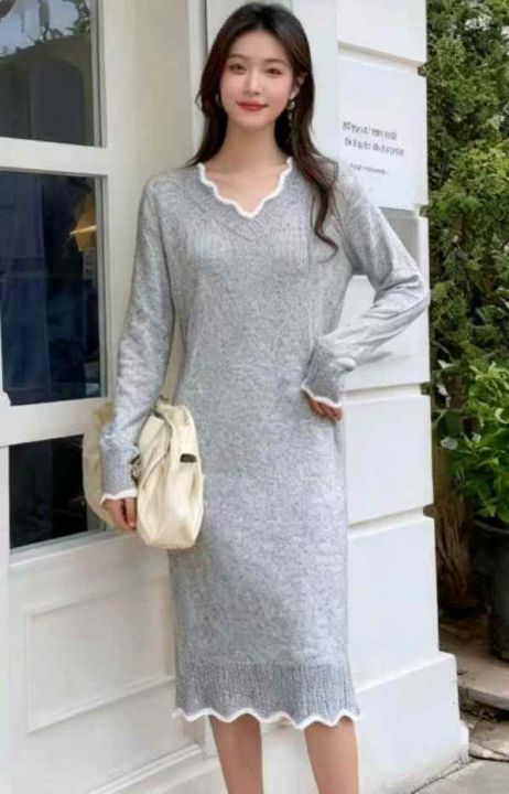 秋冬新款法式复古拼色时尚针织毛衣连衣裙,独立包装,...