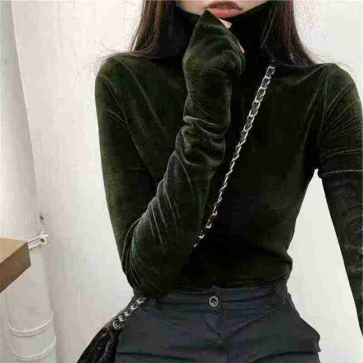 新款高领/半高领,金丝绒春秋冬季女加绒加厚打底衫内搭长袖t恤保暖上衣服,...
