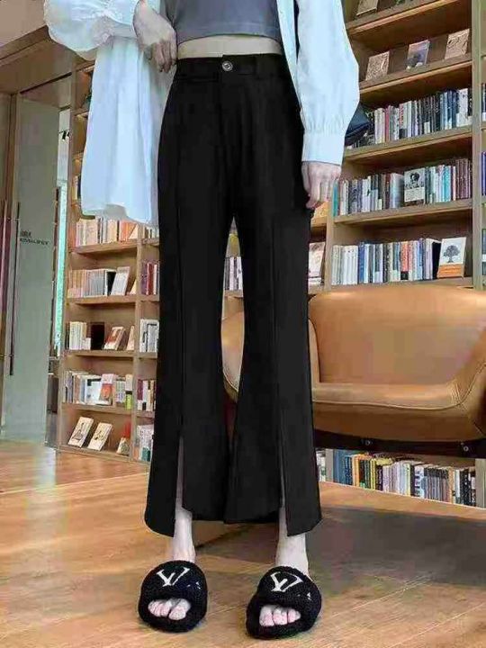 ☕️开叉西装裤女春秋新款高腰显瘦胖mm大码阔腿裤不规则微喇叭裤2187条全清...