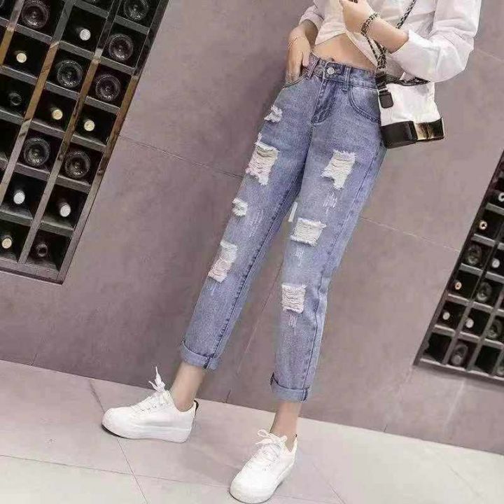 ☕️高腰破洞宽松哈伦裤女夏季显瘦老爹乞丐裤 717条全清9.9元,分货+1 码数...