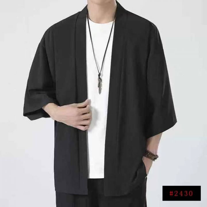 夏季新款男士简约休闲纯色七分袖开衫T恤,码数m-xxl(...