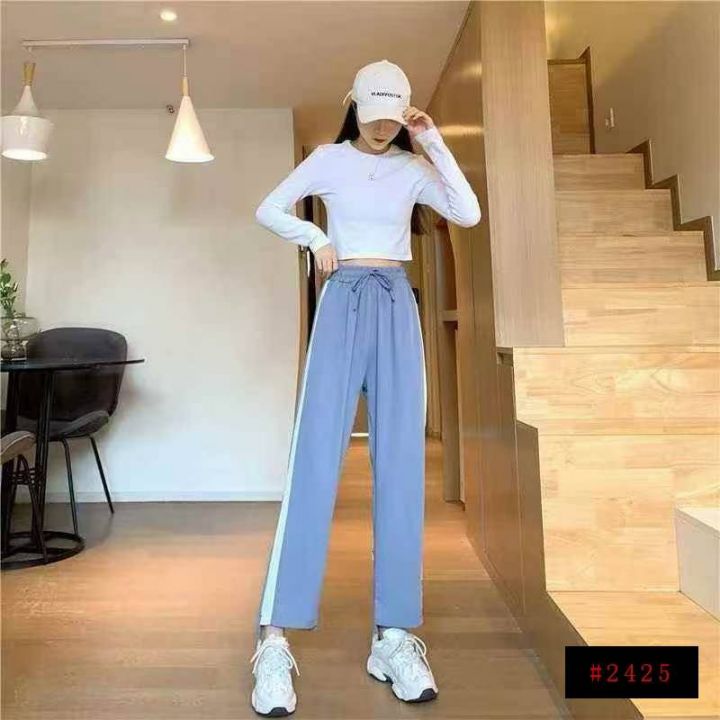 棉质运动裤女新款垂感休闲直筒春秋窄版松紧阔腿裤,数量408,码数s-2xl,独...