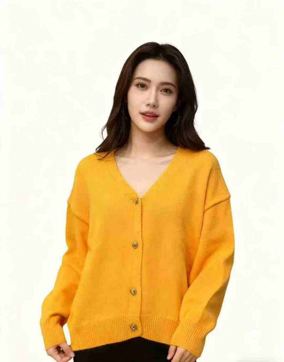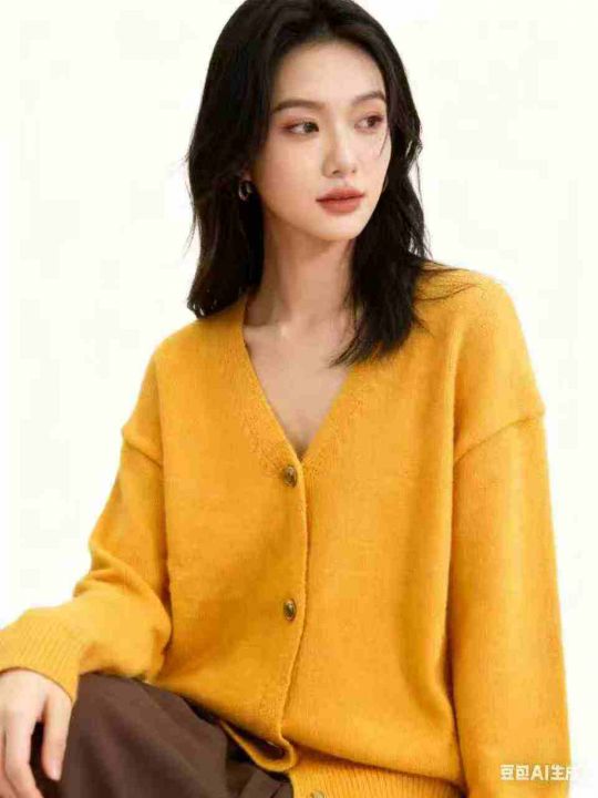 全清13.8,欧洲站流行漂亮橘色v领长袖针织毛衣开衫女秋冬软糯洋气外套上衣,单款单色,均码40件